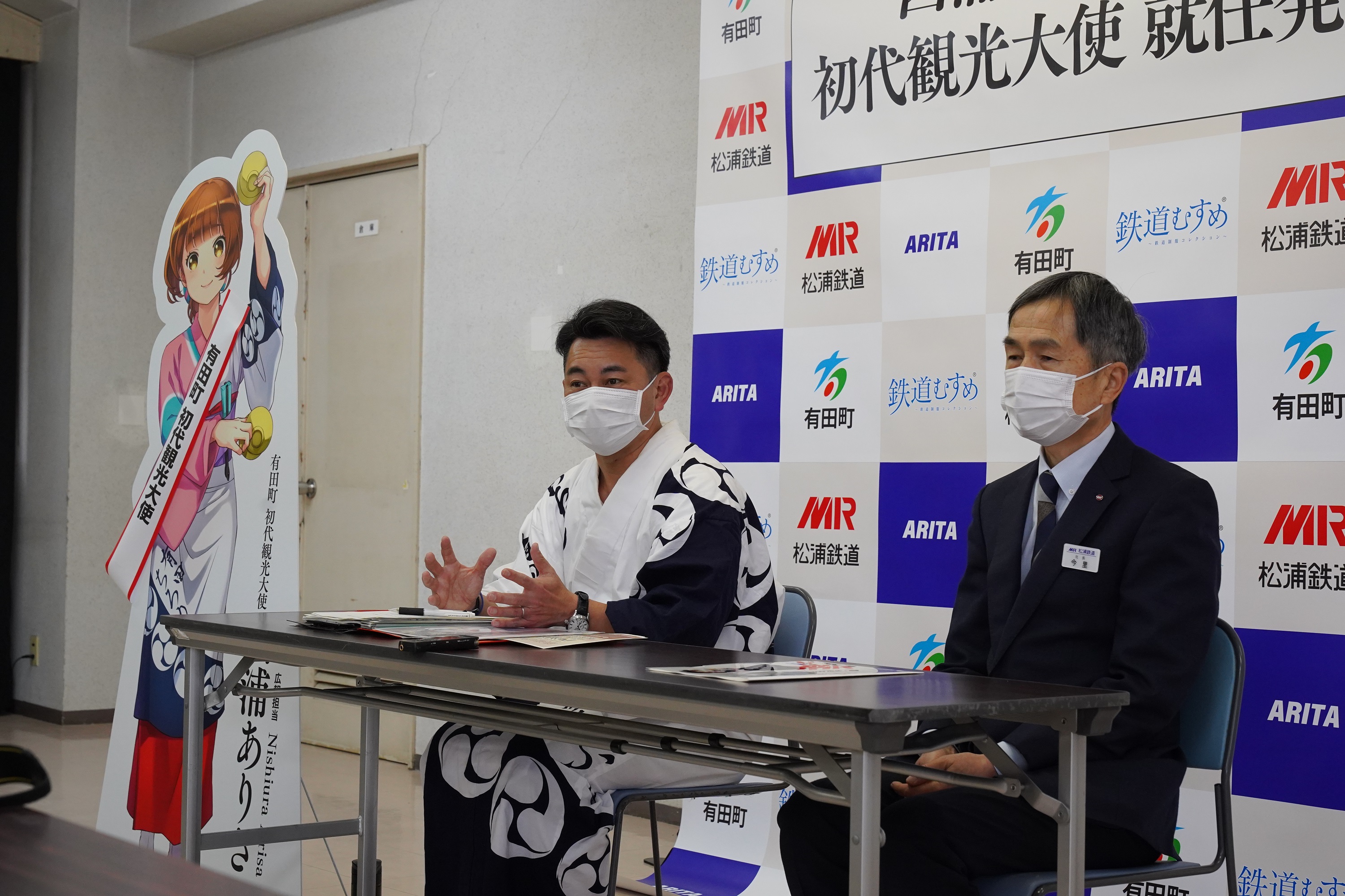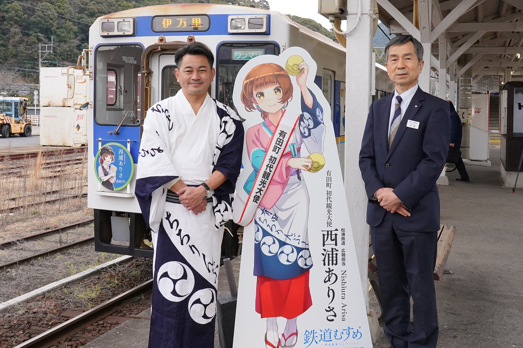 「鉄道むすめ」で松浦鉄道株式会社社員の「西浦ありさ(にしうらありさ)」さんが、有田町の初代観光大使に就任し、令和4年(2022年)1月29日(土曜日)松浦鉄道有田駅にて就任式を実施しました。