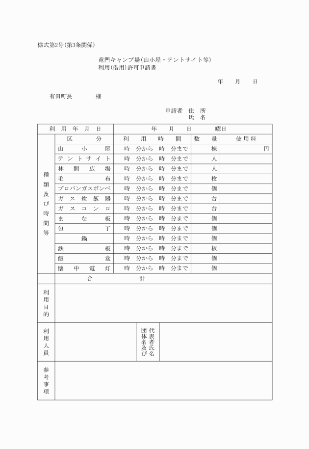 第5条 条例第12条ただし書の規定により使用料の還付を受けようとする者は、使用料還付申請書(様式第4号)を町長に提出しなければならない。