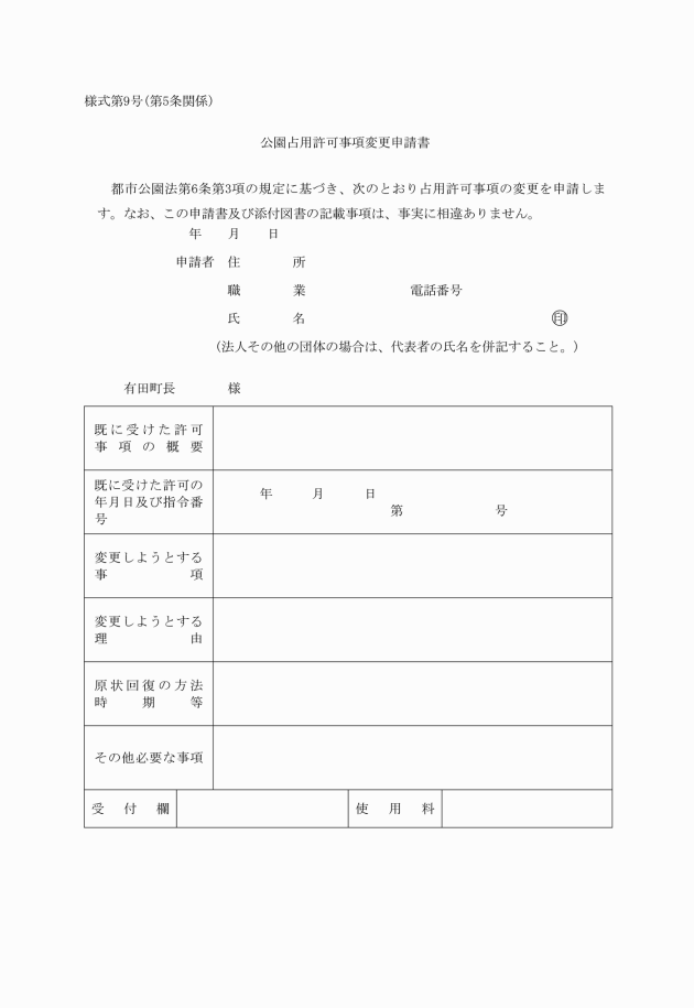 2 都市公園を構成する土地物件について所有権を移転し、又は抵当権を設定し、若しくは移転した者は、当該事実の生じた日から30日以内に公園構成土地物件に関する権利変動届(様式第18号)正副各1通を町長に提出しなければならない。