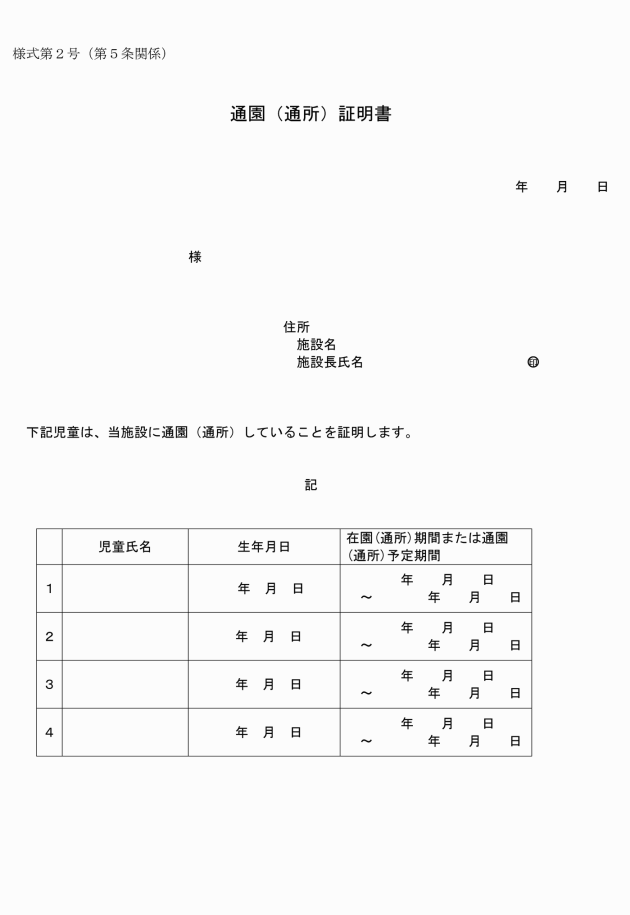 第5条 多子軽減の対象となる児童が同一の世帯にいる保護者が、給付費の支給を受けようとするときは、多子軽減に伴う障害児通所給付費支給申請書(様式第1号。以下「申請書」という。)を町長へ提出しなければならない。