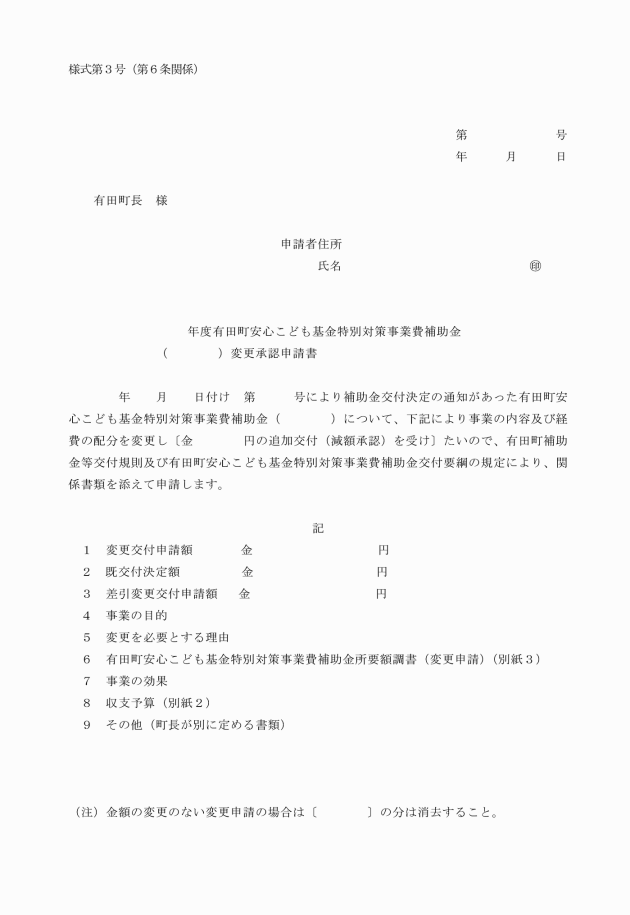 (2) 補助事業に要する事業の内容を変更する場合においては、町長の承認を受けること。ただし、補助金の額に影響を及ぼさない変更については、この限りではない。