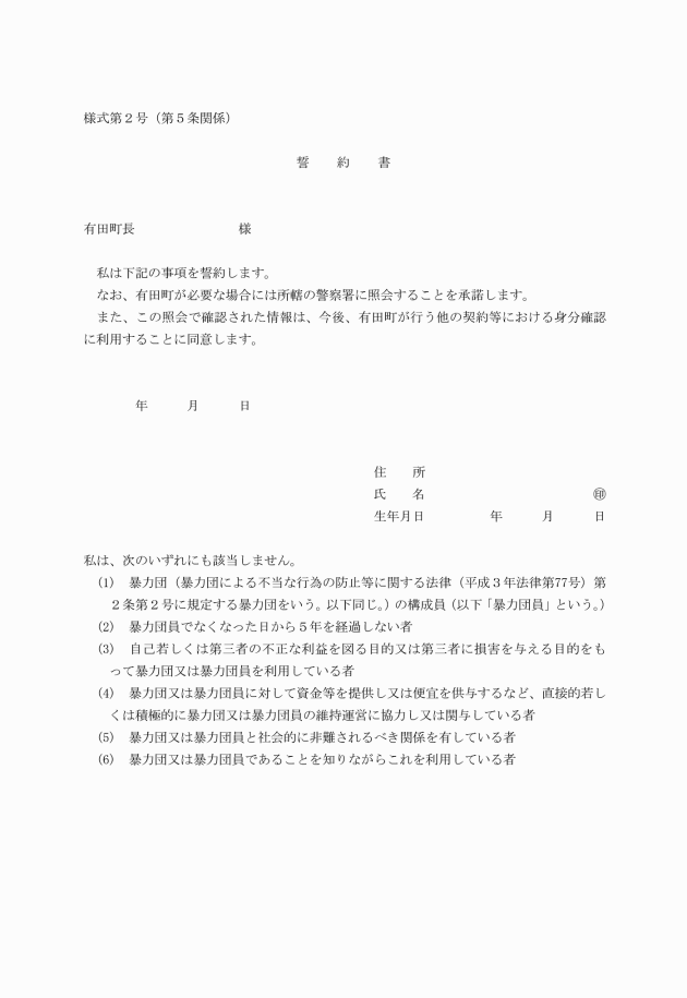 (1) 誓約書(様式第2号)