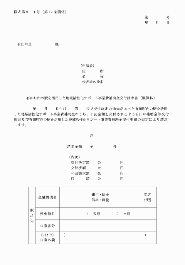 第12条 この補助金は、町長が必要と認めたときは、概算払により交付することができるものとする。