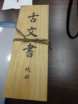 綾部君は快諾してくれ、先週、わざわざ佐世保市から当館まで持参していただきました。二つの箱に入っていた古文書などの資料はまだ目録をとる段階ながら、当初考えていた以上に、古くは源頼朝や足利尊氏、竜造寺家や鍋島家の領主の名前があちこちに出てきます。まだ新五郎さんには行きついていませんが、胸躍らせながら調査を進めているところです。
