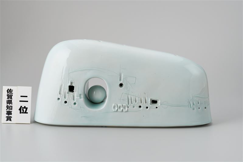 物体の中を視覚が通り抜ける感覚に心地良さを感じ、それを土で表現する為の透かし彫りを昇華させた作品です。自身の中の心象風景にある「かろやか」や「透きとおる」といったイメージを磁土で表現しています。